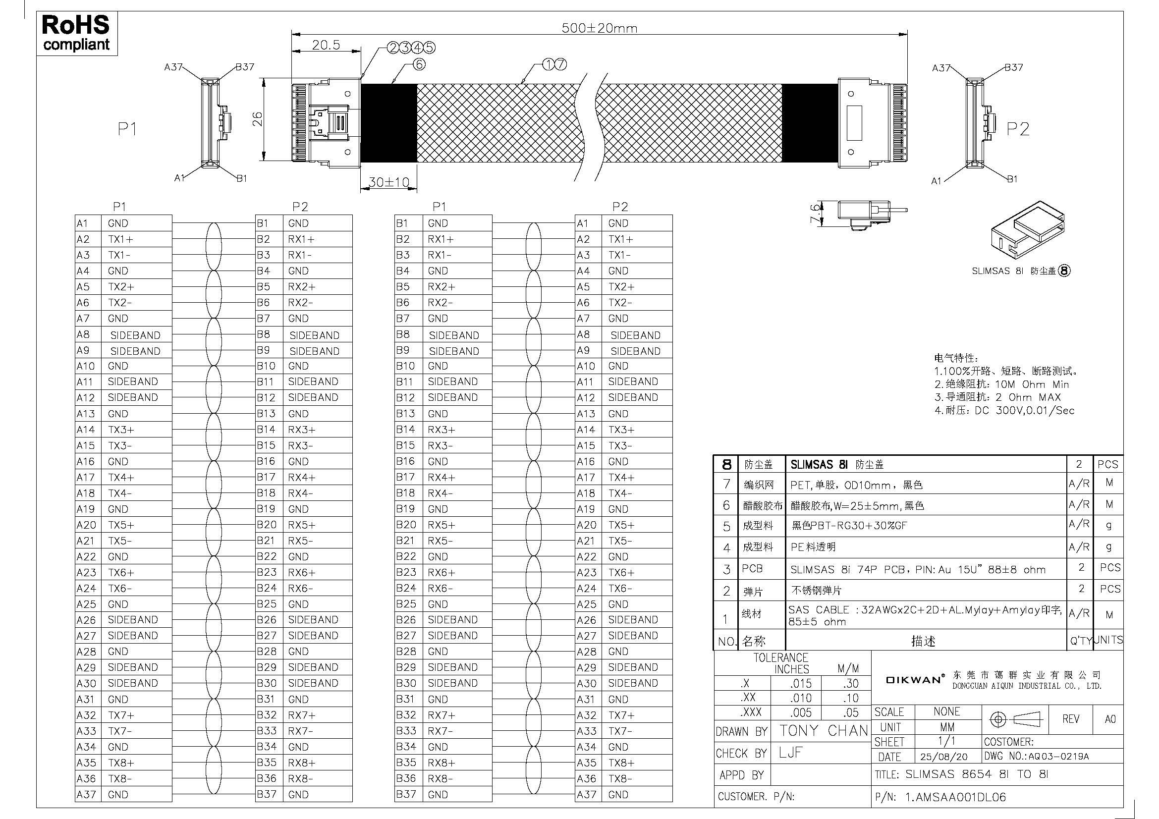| • | コネクタは SFF-8654 設計仕様に準拠 |