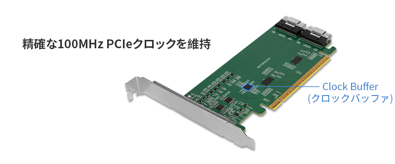 | • | 100MHz PCIeクロックバッファによる安定したタイミング同期 |