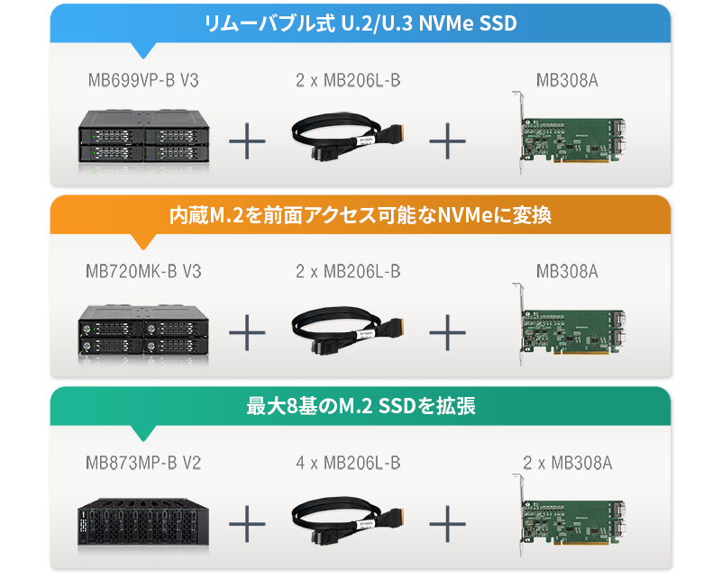 • | ICY DOCK NVMeモバイルラックおよびケーブルと互換性検証済み |