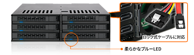 | • | 各ベイに個別ブルー LED インジケーターを搭載 |