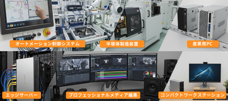 自動化システム、半導体製造装置、産業用PC、エッジサーバー、メディア編集ワークステーションに最適