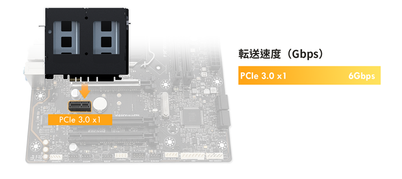 最大6Gbpsの転送速度を提供するコンパクトな PCIe 3.0 x1 インターフェース