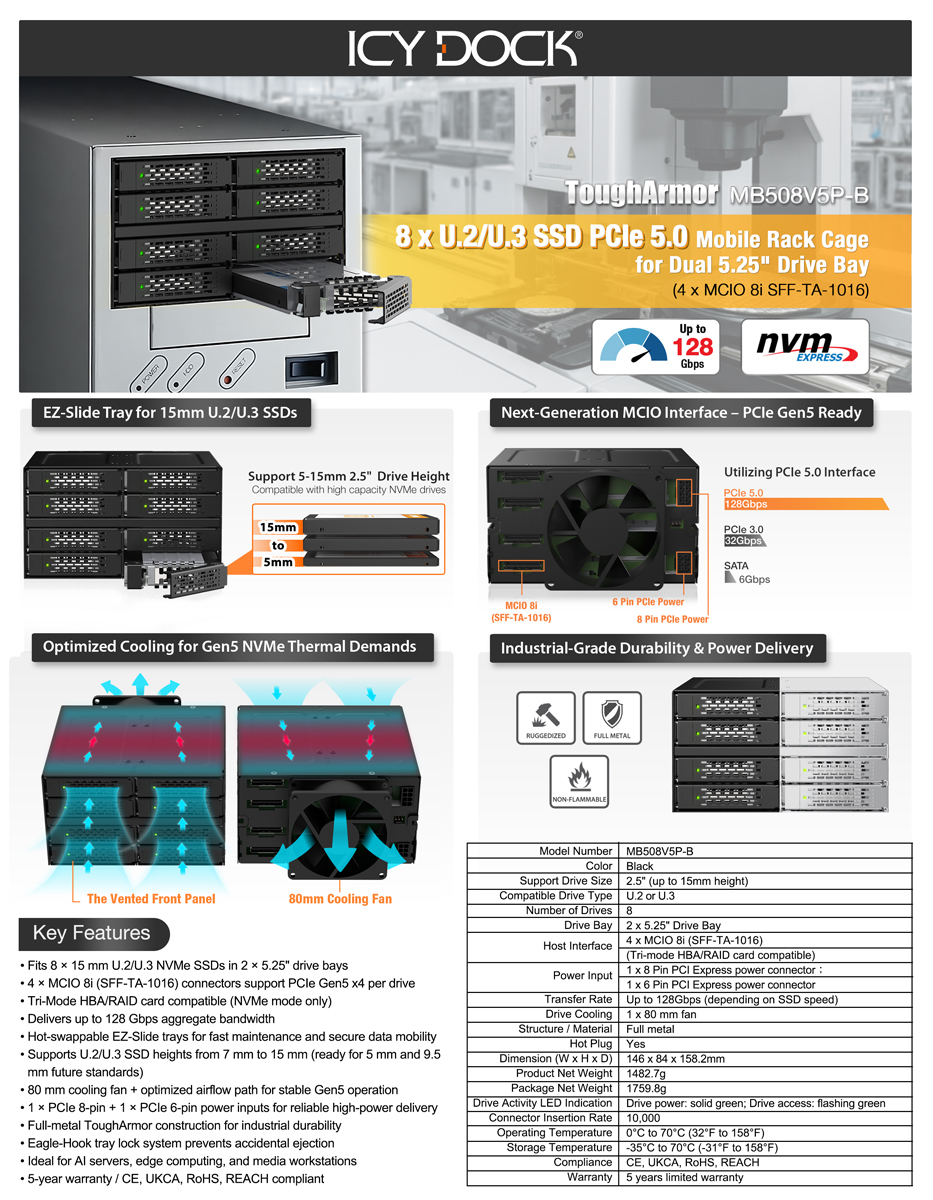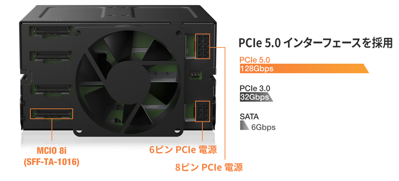 | • | 80 mm 冷却ファンと最適化されたエアフロー設計により PCIe Gen5 の安定動作を実現 |