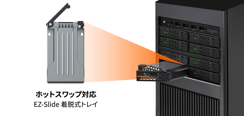 | • | ホットスワップ対応 EZ-Slide トレイにより、迅速な保守と安全なデータ運用を実現 |