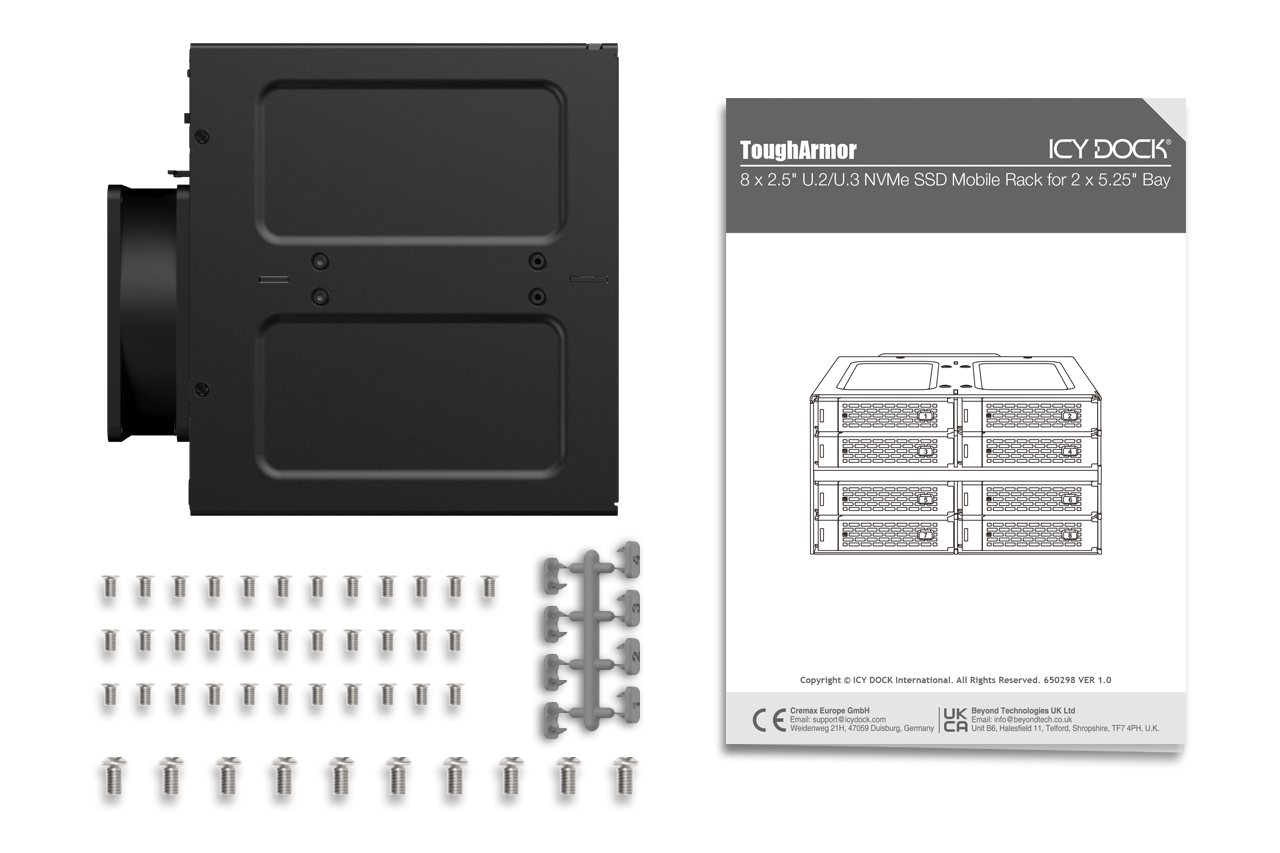 | • | 2 × 5.25" ドライブベイに 15 mm U.2/U.3 NVMe SSD を最大8台搭載可能 |