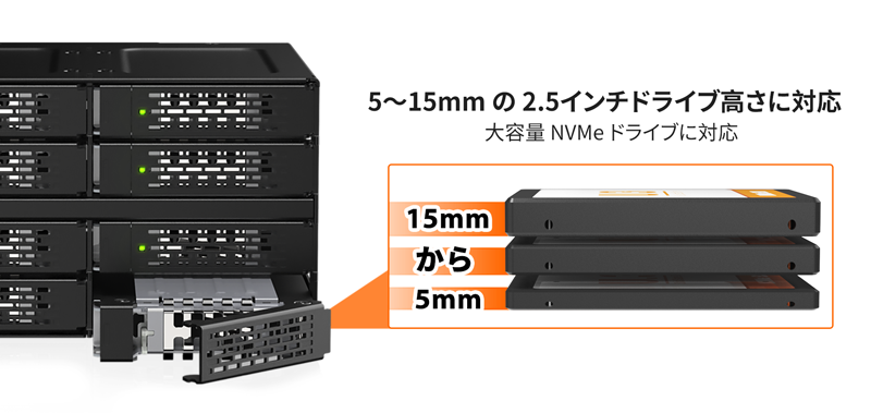 | 対応ドライブサイズ: | 2.5インチ(最大 15mm 高) |