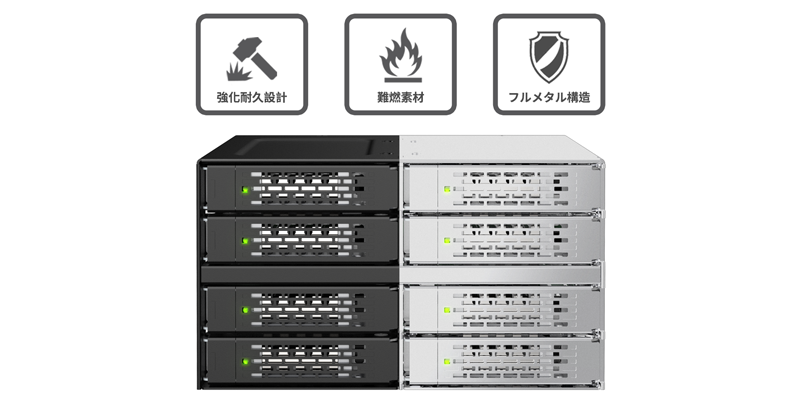 A: 当社が採用している冷却ファンは、ドライブエンクロージャと組み合わせて十分な検証を行い、正常な動作および(対象モデルでは)ファン速度制御機能をサポートしています。そのため、最適な性能を得るためには純正ファンの使用を推奨します。ただし、すべての用途に適合しない場合があることを考慮し、サードパーティ製ファンを使用した場合でも保証は継続されます。なお、サードパーティ製ファンが原因で装置に電気的な損傷が発生した場合は、保証が無効となる可能性があります。