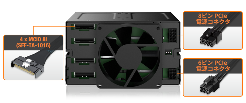 | ホストインターフェース: | 4 x MCIO 8i(SFF-TA-1016)(Tri-mode HBA / RAID カード対応) |