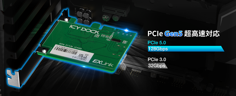 | • | PCIe Gen5 Redriver を内蔵し、長距離信号伝送をサポート |