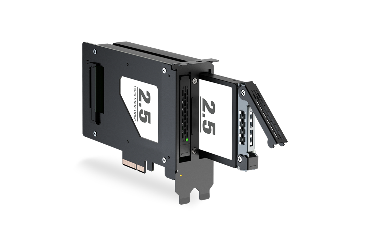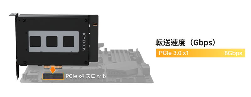 | • | 電源およびデータを同時に供給する PCIe x4 インターフェースにより追加ケーブル不要 |