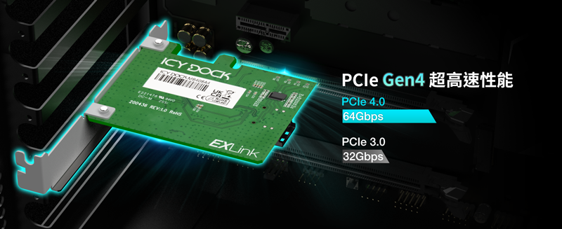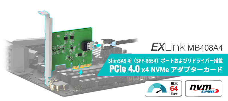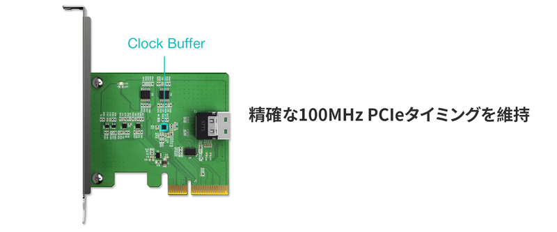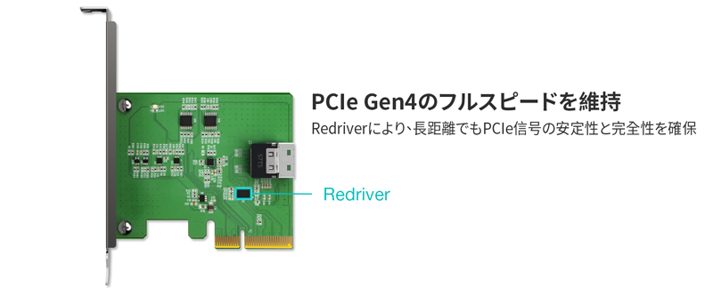 | • | 信号伝送距離の拡張に対応するPCIe Gen4 Redriverを内蔵 |
