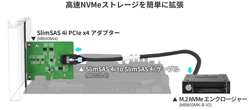 | • | NVMeストレージ向けSlimSAS 4i(SFF-8654)コネクタ |
